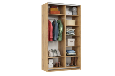 Лицевые элементы оформлены кромкой ПВХ толщиной 2 мм . Внутренние и скрытые детали защищены кромкой ПВХ толщиной 0,4 мм. Штанга для одежды расположена в левой части корпуса, выдерживает нагрузку до 22кг.
