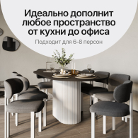 Обеденный стол - неотъемлемая деталь кухонного интерьера. Дизайнерский стол в стиле минимализма станет гармоничным дополнением кухонного пространства. Благодаря своей форме, кухонный стол создает атмосферу близости и общения во время приема пищи. Кроме того, этот стол также может быть использован как письменный стол или как рабочий стол, его эргономичный дизайн обеспечит комфорт и удобство. Круглый стол также имеет игровую функцию, что делает игровой стол универсальным и практичным предметом мебели. Вы можете наслаждаться игрой со своими детьми или проводить время весело с друзьями за настольными играми, не беспокоясь о нехватке места. Стол доставляется в разобранном виде: основание и подстолье. В комплекте имеются регулируемые ножки для устойчивости стола на неровных поверхностях.