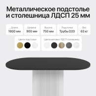 – трубчатое основание (подстолье) изготовлено из металла (высококачественная нержавеющая сталь) с устойчивой (двойной) порошковой окраской - 700х350мм, столешница - ЛДСП толщиной 25 мм