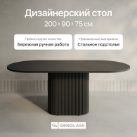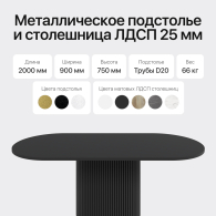 Стол овальный обеденный с металлическим черным подстольем 200*90*75 (Черный) Код I0000417827