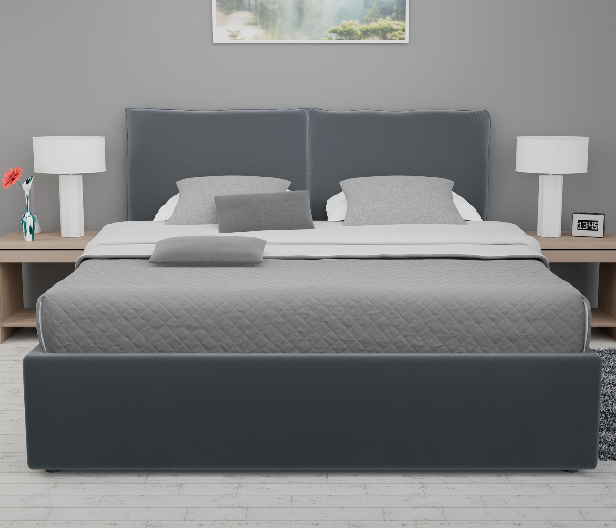 Чехлы царг на липучках обеспечивают легкость в уходе и возможность быстрой смены обивки, позволяя вам дополнить интерьер новыми акцентами. Мягкое изголовье придает кровати изысканный вид и обеспечивает комфорт во время чтения книги или просмотра любимого сериала.