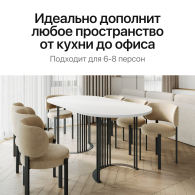 Кроме того, этот стол также может быть использован как письменный стол, или как рабочий стол, его эргономичный дизайн обеспечит комфорт и удобство. Стол VIOLUR идеально подойдет для офиса или переговорной комнаты. За ним можно провести продуктивные рабочие встречи, обсудить важные вопросы с партнерами или просто насладиться плодотворной работой. Овальный стол также имеет игровую функцию, что делает его стол универсальным и практичным предметом мебели. Вы можете наслаждаться игрой со своими детьми или проводить время весело с друзьями за настольными играми, не беспокоясь о нехватке места.
