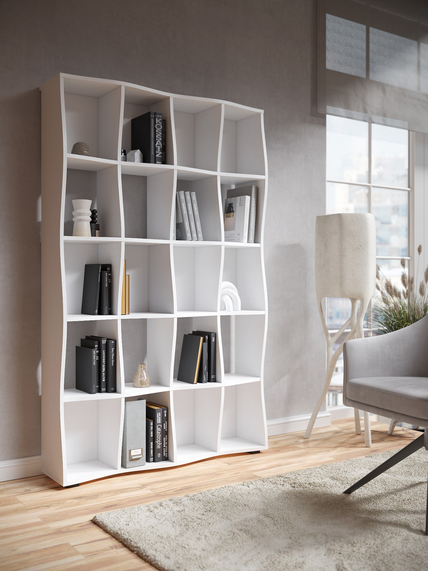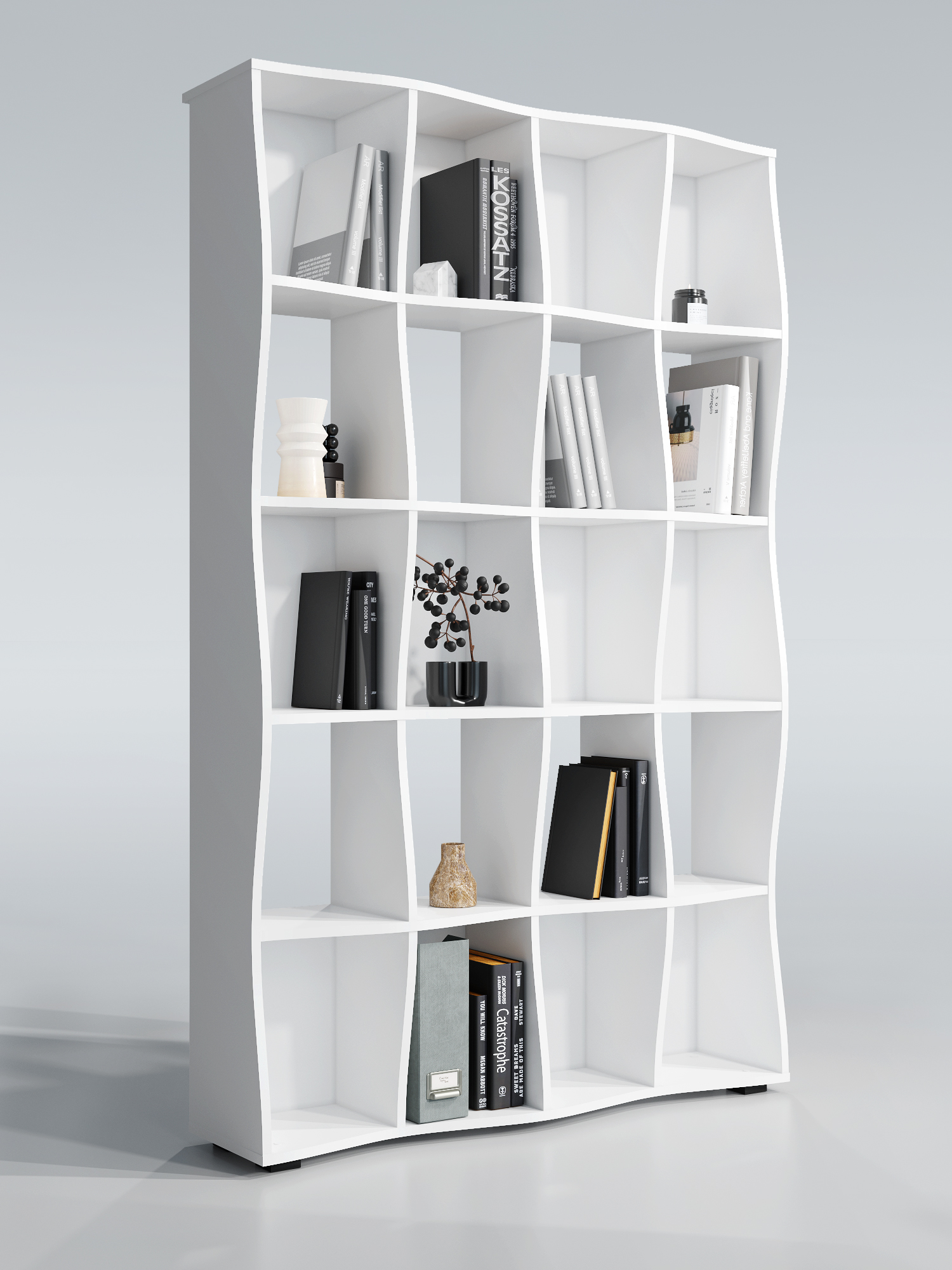 Функциональность: открытые полки для хранения книг, аксессуаров и декора.