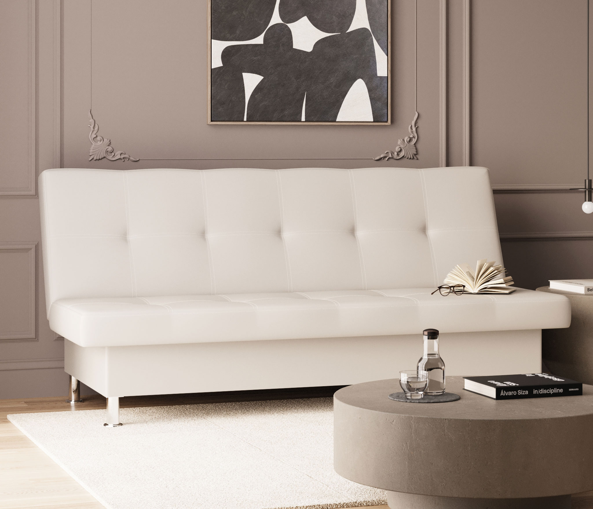 Диван-кровать Бомонд, экокожа (Кожзам белый)