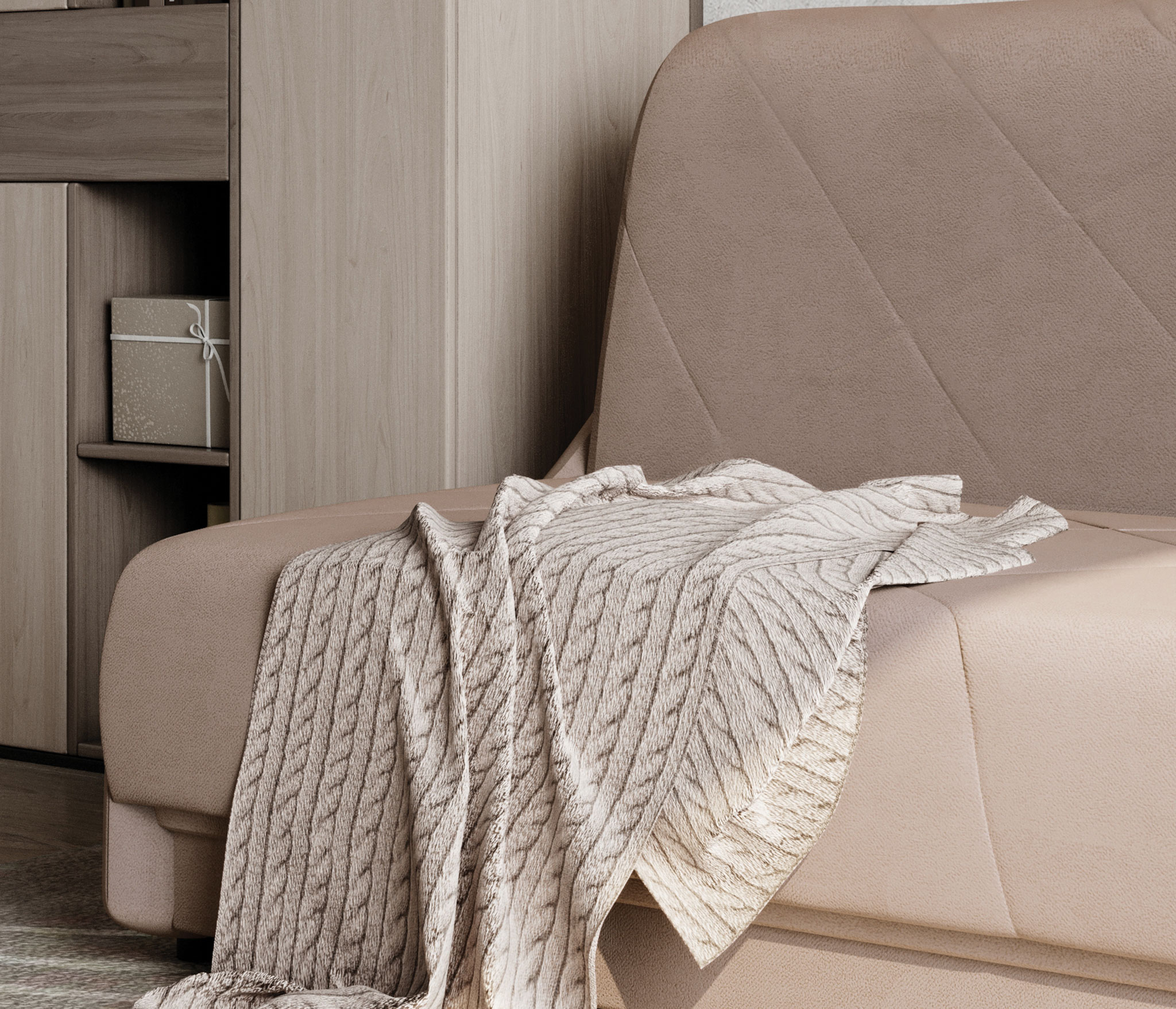 Ткань чехла простегана на периотеке, что придает дополнительный объем и мягкость.