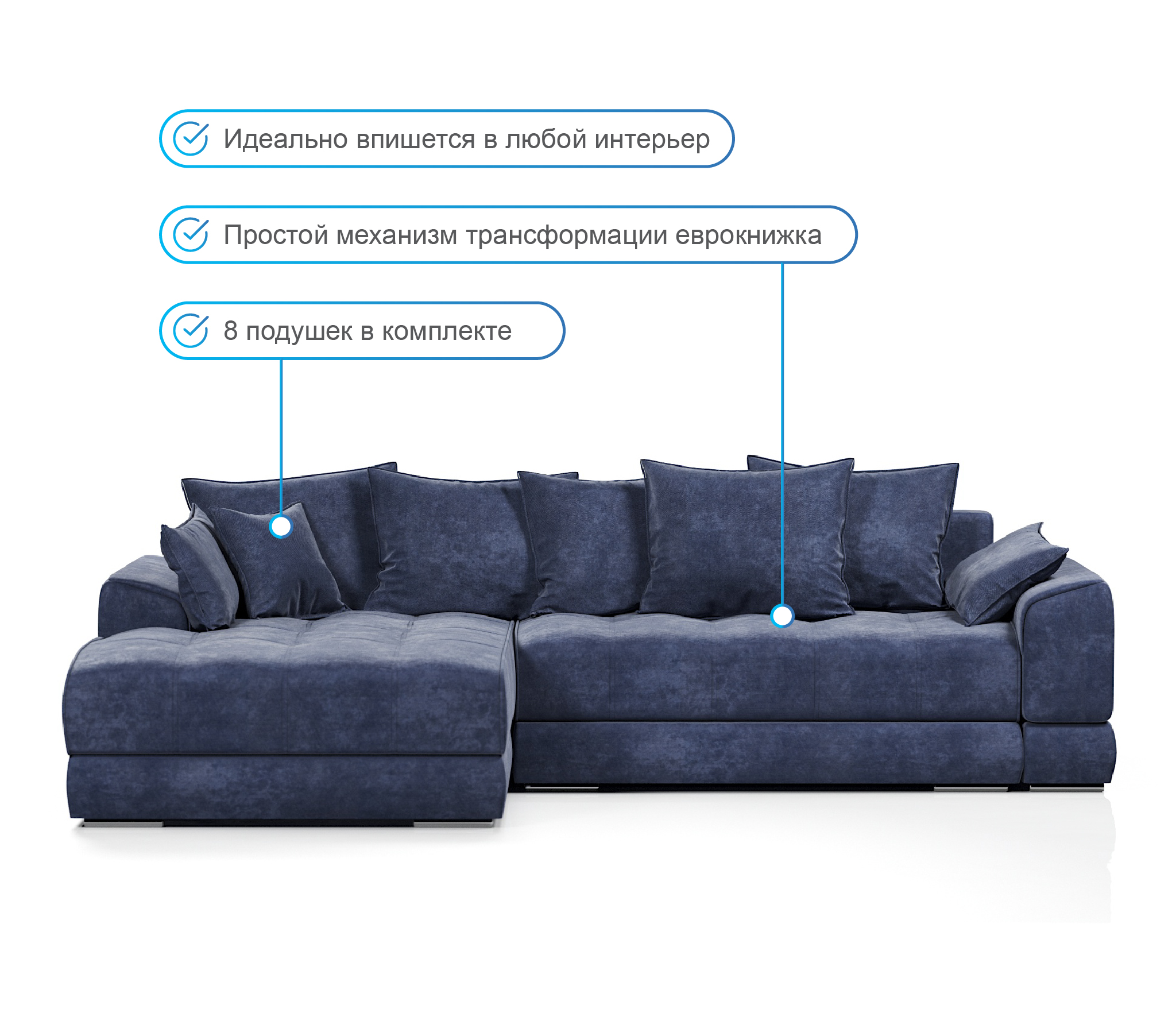 Механизм трансформации. Диван оснащен механизмом Еврокнижка, с которым знаком каждый. Механизм предназначен для ежедневной эксплуатации.