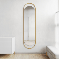Простота, практичность и эстетика правильных форм отличают дизайнерское настенное зеркало этой модели. Оно удивительным образом позволяет сохранить стилистическое равновесие интерьера, выполненного в любом стиле. Зеркало достаточно крупное в овальной металлической раме, но при этом его настенное исполнение позволяет сэкономить свободное пространство. Качество зеркального полотна на высоте, потому что оно является продукцией бельгийского бренда AGC Glass, который признан технологическим лидером в Европе и далеко за её пределами.